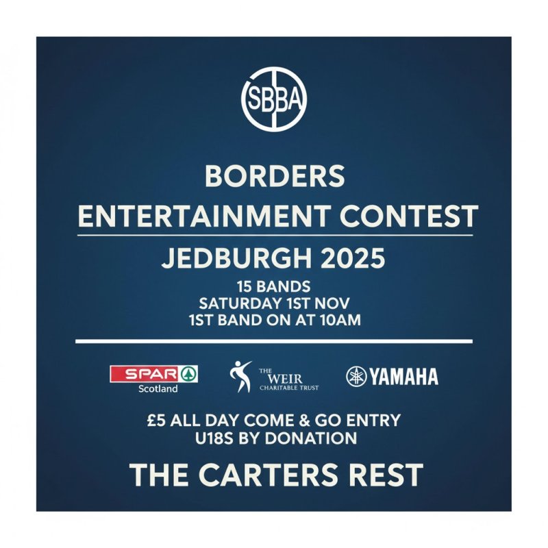Hosted by Jedforest Instrumental Band, 15 bands from all around Scotland will be playing 15 mins of entertaining music to find out who this year's champion band will be.